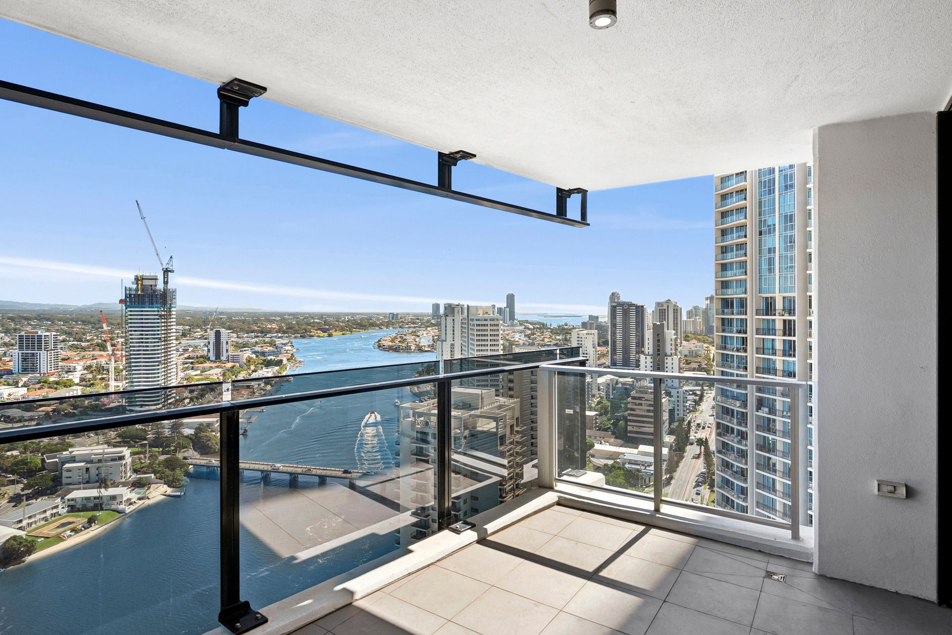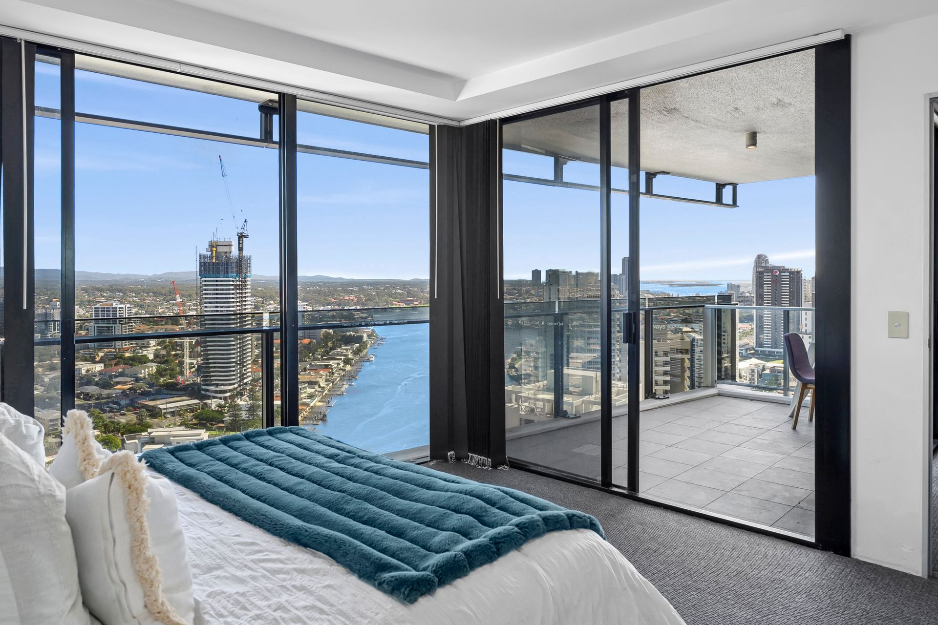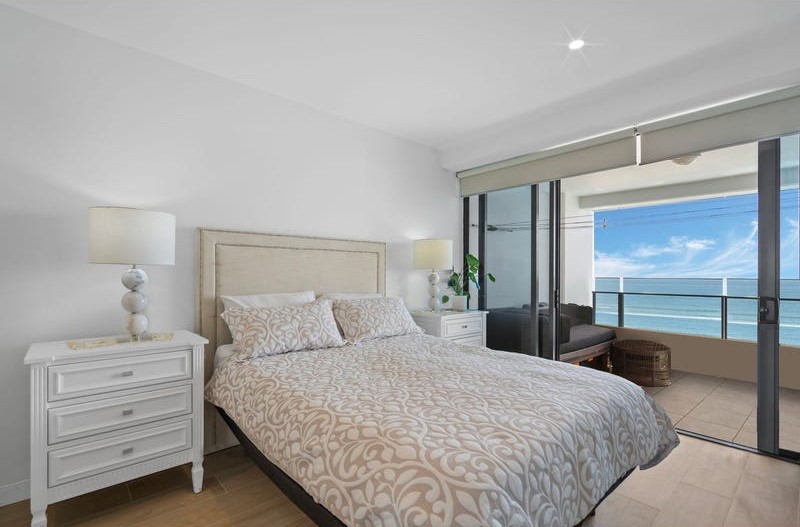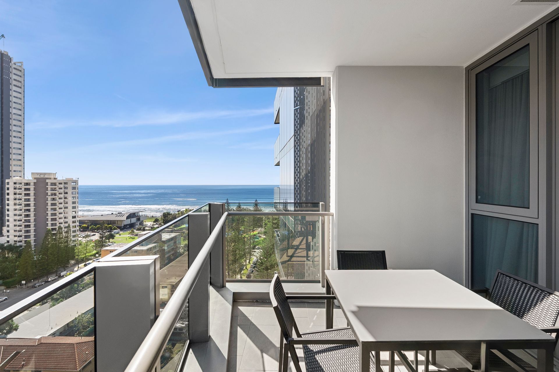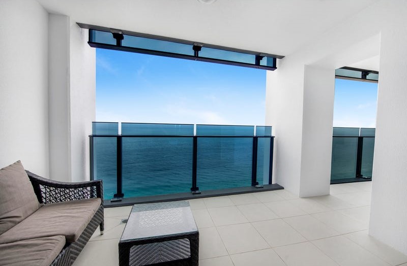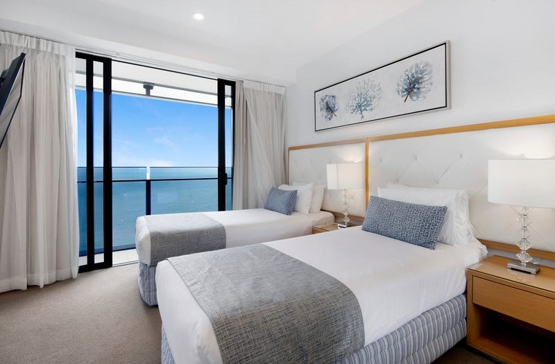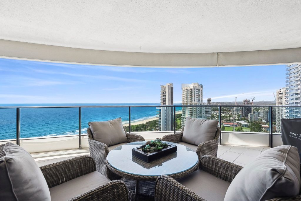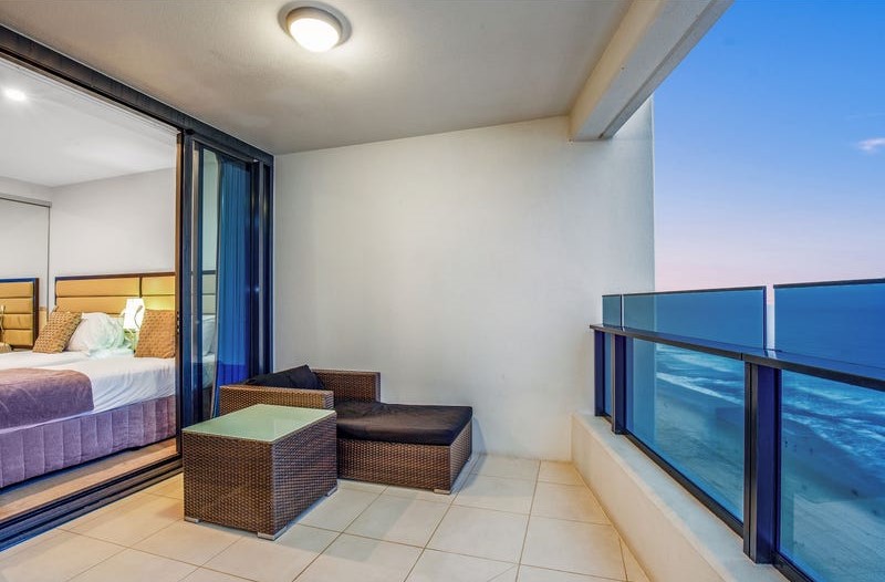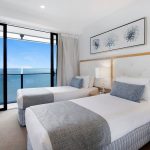This room type is the most sought-after in the building, as they have full glass balconies with no concrete pillars on the balconies. The views are simply the best looking all of the way down the sand to Coolangatta and around to the hinterland and river.
