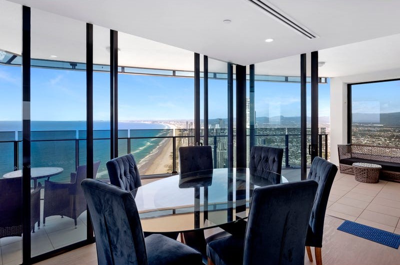 Peppers Soul is now well established in the Gold Coast luxury accommodation market, regarded by many as the number 1 building on the Gold Coast. This 3 bedroom, 2 bathroom sub penthouse shares the entire 63rd floor with just one other apartment and captures 270-degree views as far as the eye can see.
