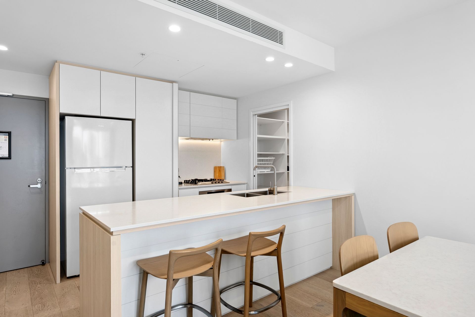 Modern kitchen with rare walk-in pantry